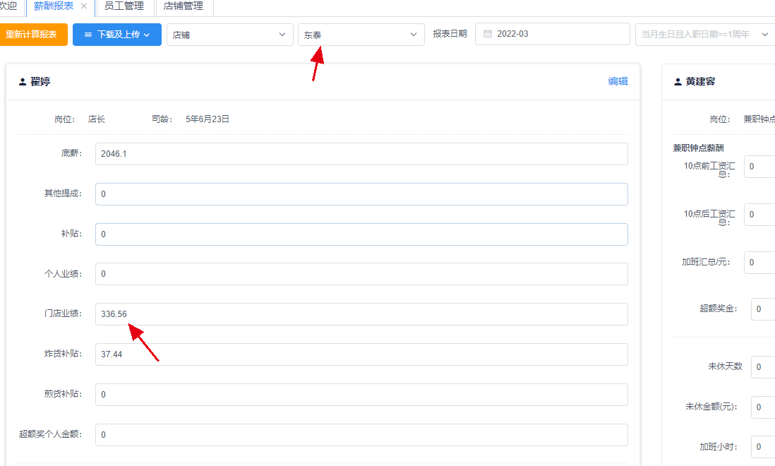 薪酬报表 :店铺是“拟计点数”方式计算的。